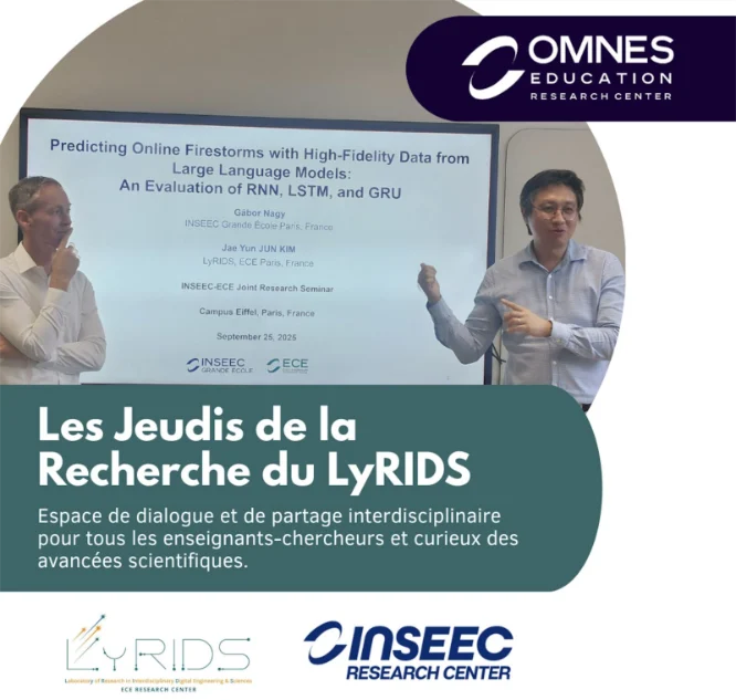 Ce séminaire exceptionnel s’inscrit dans le cadre de rencontres scientifiques co-organisées par les centres de recherche LyRIDS (ECE) et INSEEC Grande École. Il vise à favoriser le dialogue interdisciplinaire entre nos deux institutions. Ce premier séminaire réunira des perspectives croisées en sciences de l’ingénieur, sciences sociales et management. Il sera animé par Gabor NAGY et Jae Yun JUN KIM, enseignants-chercheurs respectivement au sein de l’INSEEC et du LyRIDS.